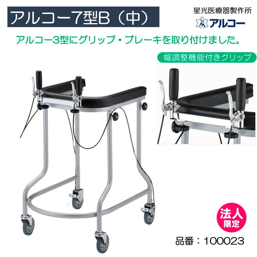 アルコー アルコー7型B 中 100023 グリップ ブレーキ付き 歩行車 歩行器 屋内 室内 病院 馬蹄型 星光医療器製作所 個人宅配送不可 法人限定