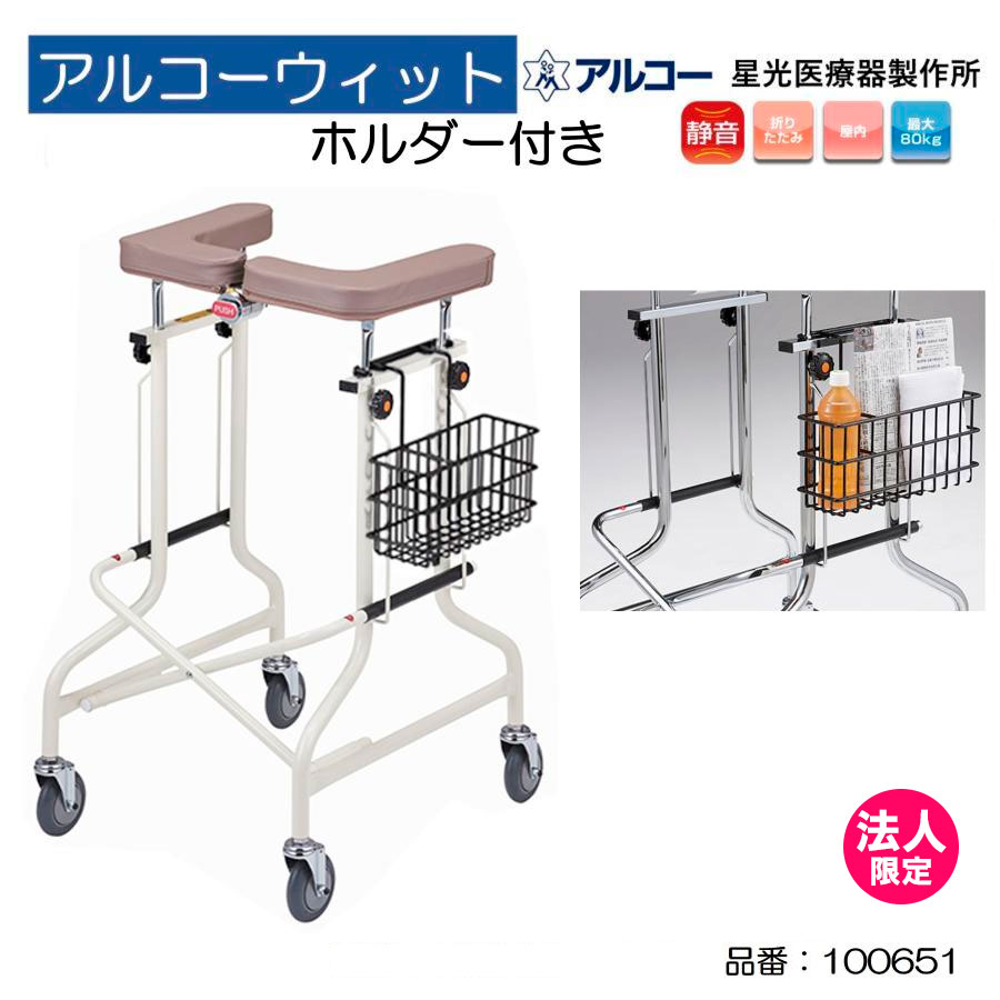 アルコー アルコーウィット ホルダー付 100651 歩行車 歩行器 馬蹄型 折りたたみ 屋内 室内 病院 星光医療器製作所 個人宅配送不可 法人限定