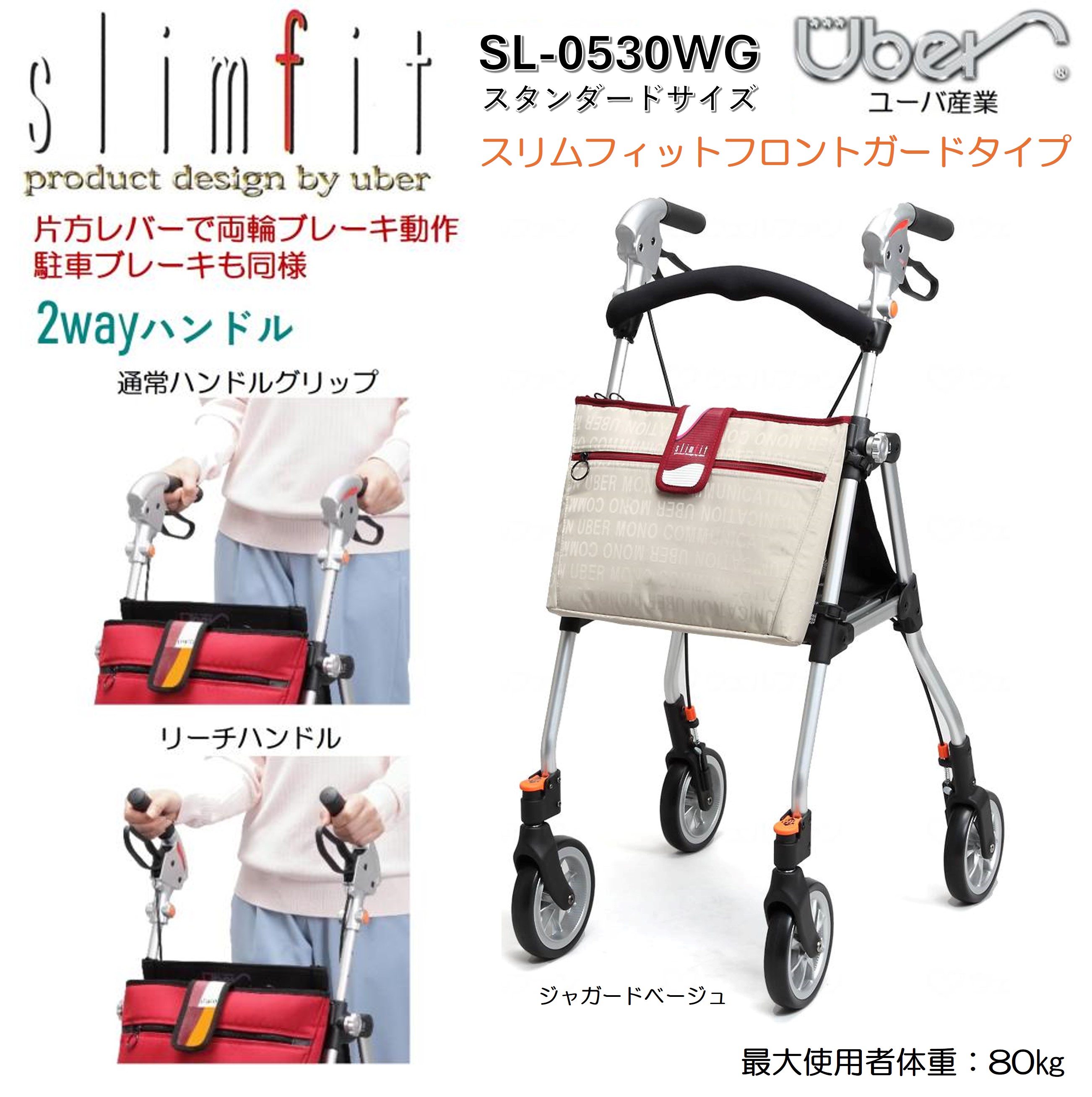 歩行車 歩行器 屋外 屋内 スリムフィット ガード付 スタンダードサイズ ジャガードベージュ SL-0530WG 軽量 コンパクト 2WAYハンドル 送料無料 ユーバ産業