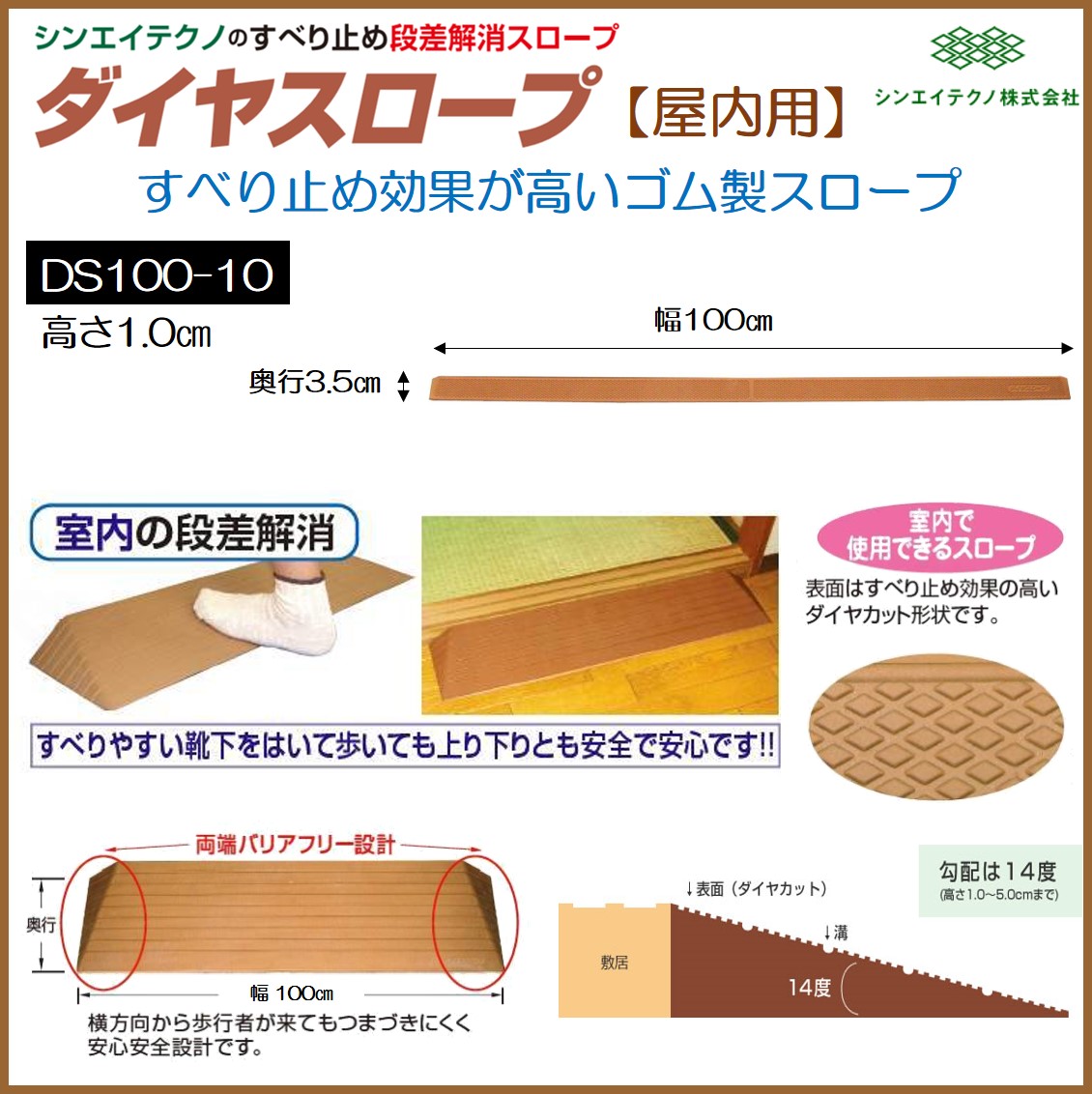 段差解消 屋内用 スロープ 段差 ダイヤスロープ 100cm DS100-10 高さ1.0cm ゴム製 すべり止め 置くだけ シンエイテクノ