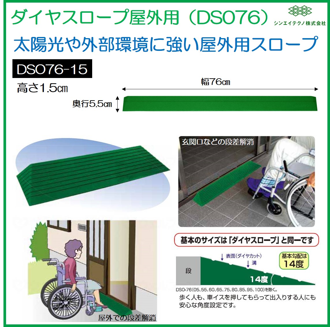 段差解消 屋外用 スロープ 段差 ダイヤスロープ 76cm DSO76-15 高さ1.5cm シンエイテクノ