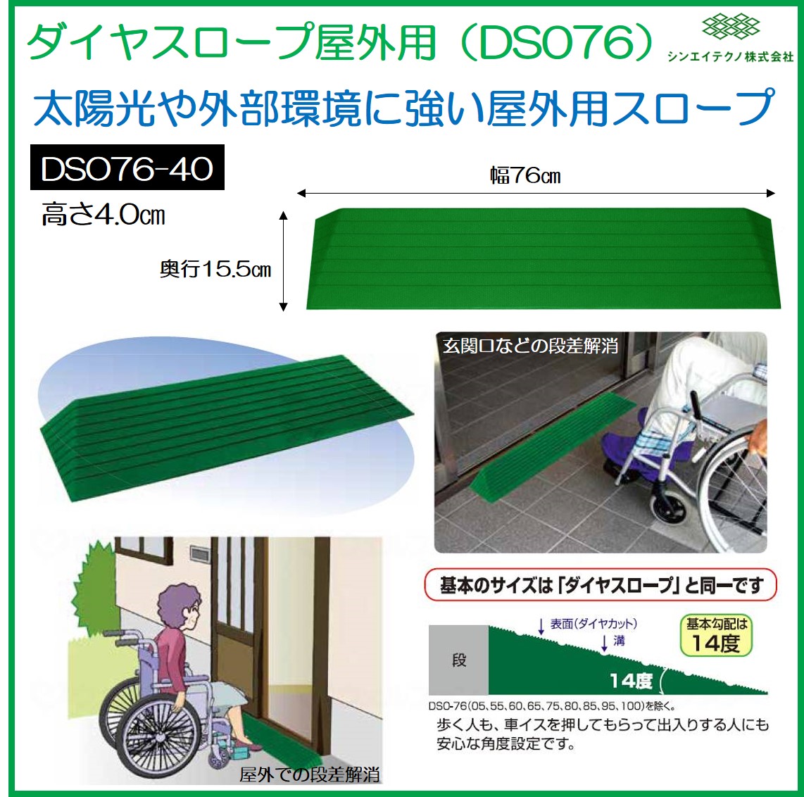 段差解消 屋外用 スロープ 段差 ダイヤスロープ 76cm DSO76-40 高さ4.0cm シンエイテクノ