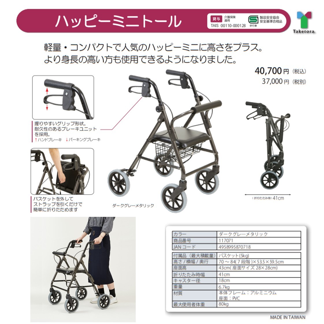 歩行車 歩行器 屋外 屋内 ハッピーミニトール 竹虎 送料無料
