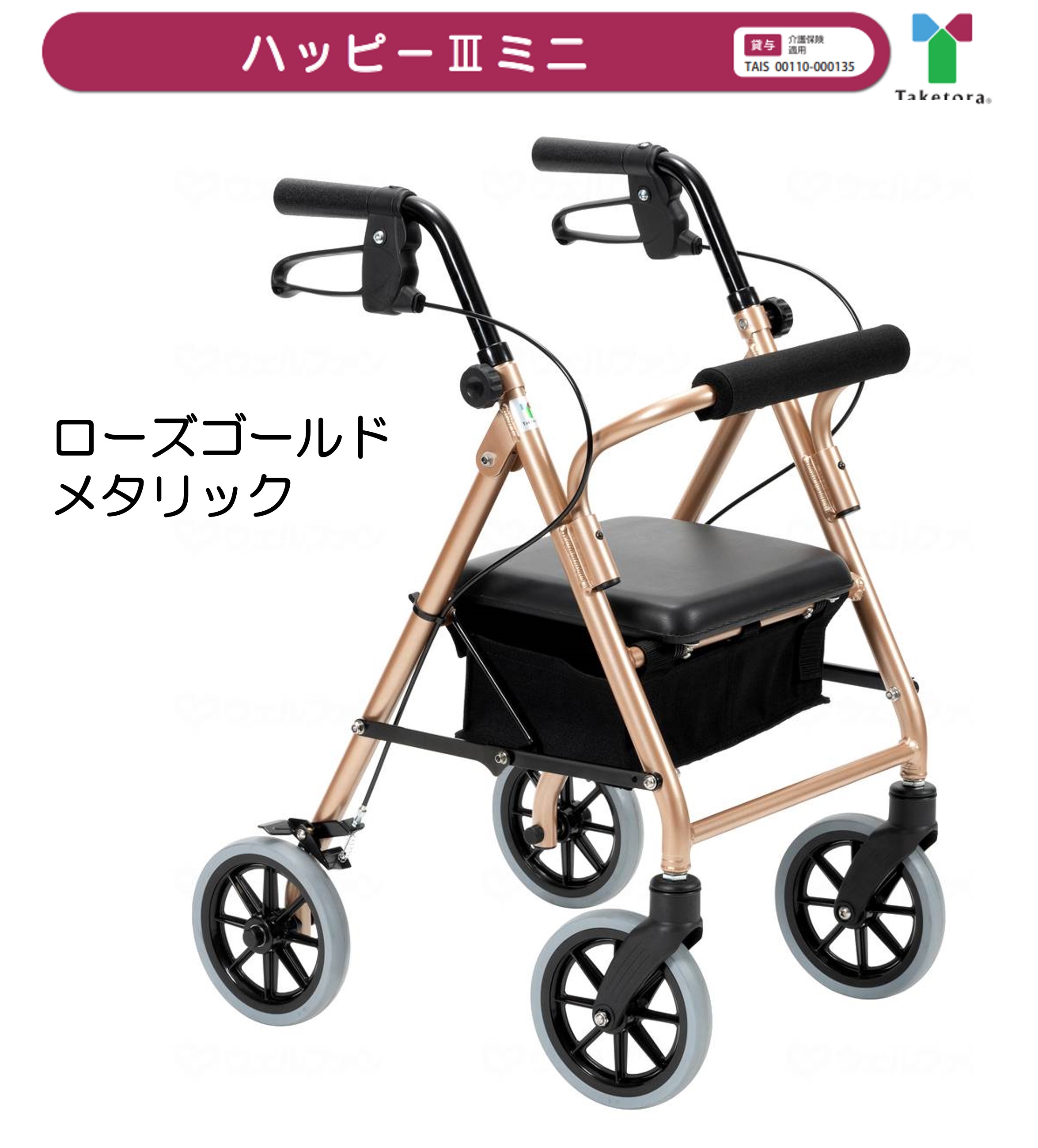 歩行車 歩行器 屋外 屋内 ハッピーIII ミニ ローズゴールドメタリック HAPPY3mini 竹虎 送料無料
