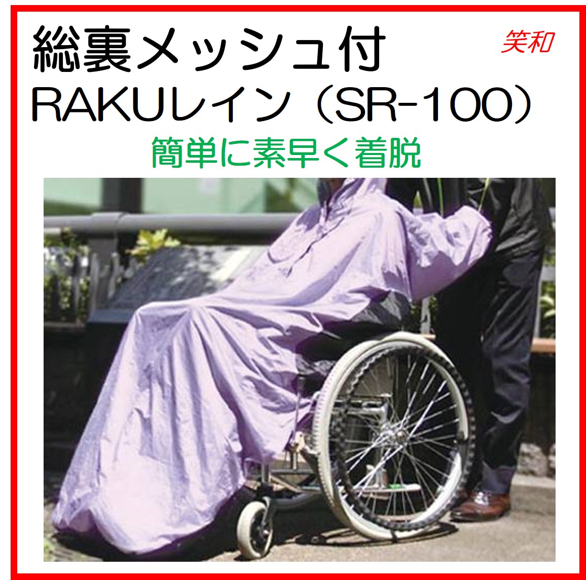 レインコート 車椅子 ポンチョ カッパ 車いす 雨 屋外 総裏メッシュ付き RAKUレイン SR-100 笑和