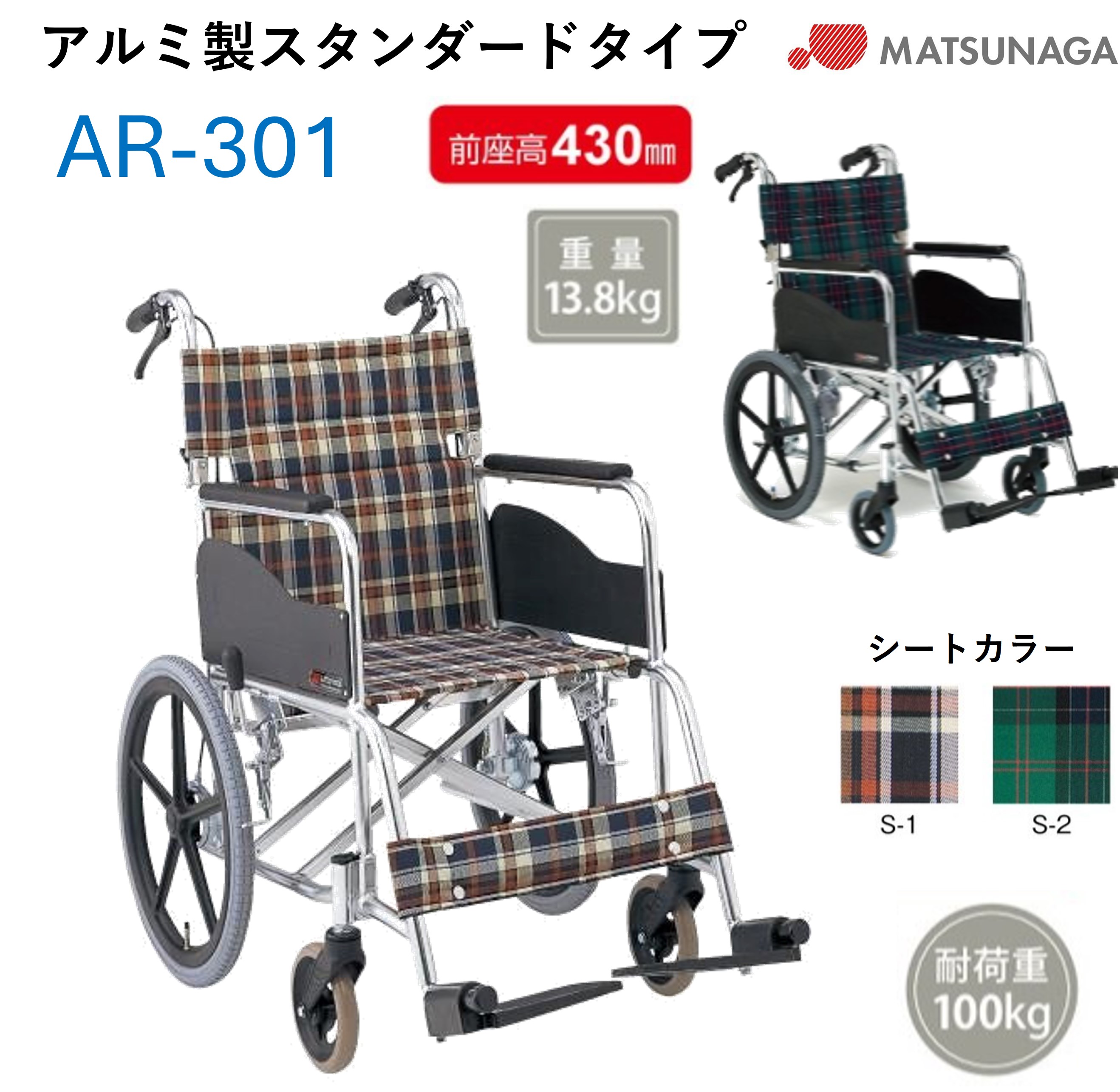 車椅子 軽量 標準 介助式 車いす AR-301 シート幅38cm 40cm 42cm 松永製作所 個人宅配送無料