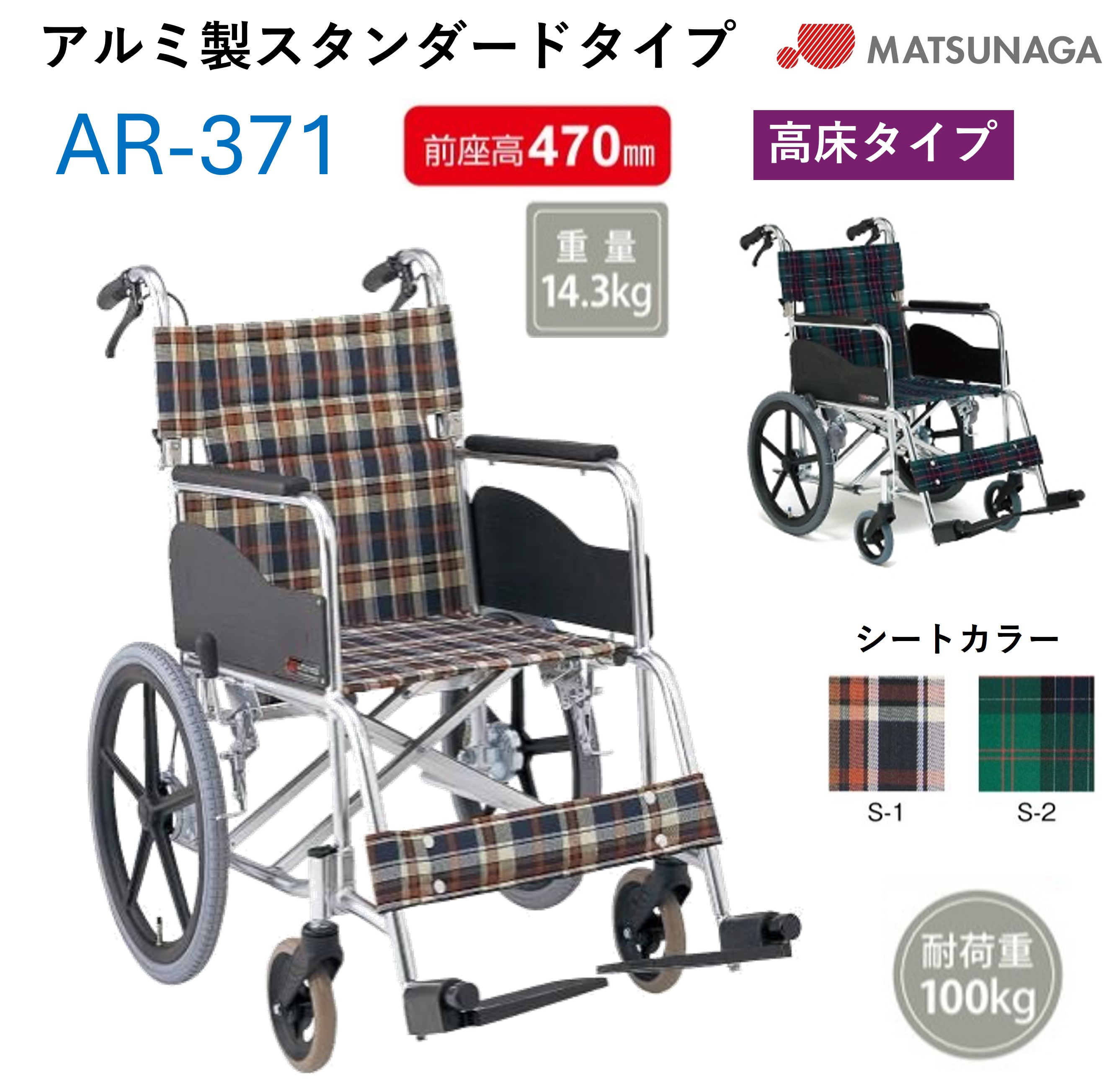 車椅子 軽量 高床 標準 介助式 車いす AR-371 シート幅40cm 42cm 44cm アルミ製 松永製作所 個人宅配送無料