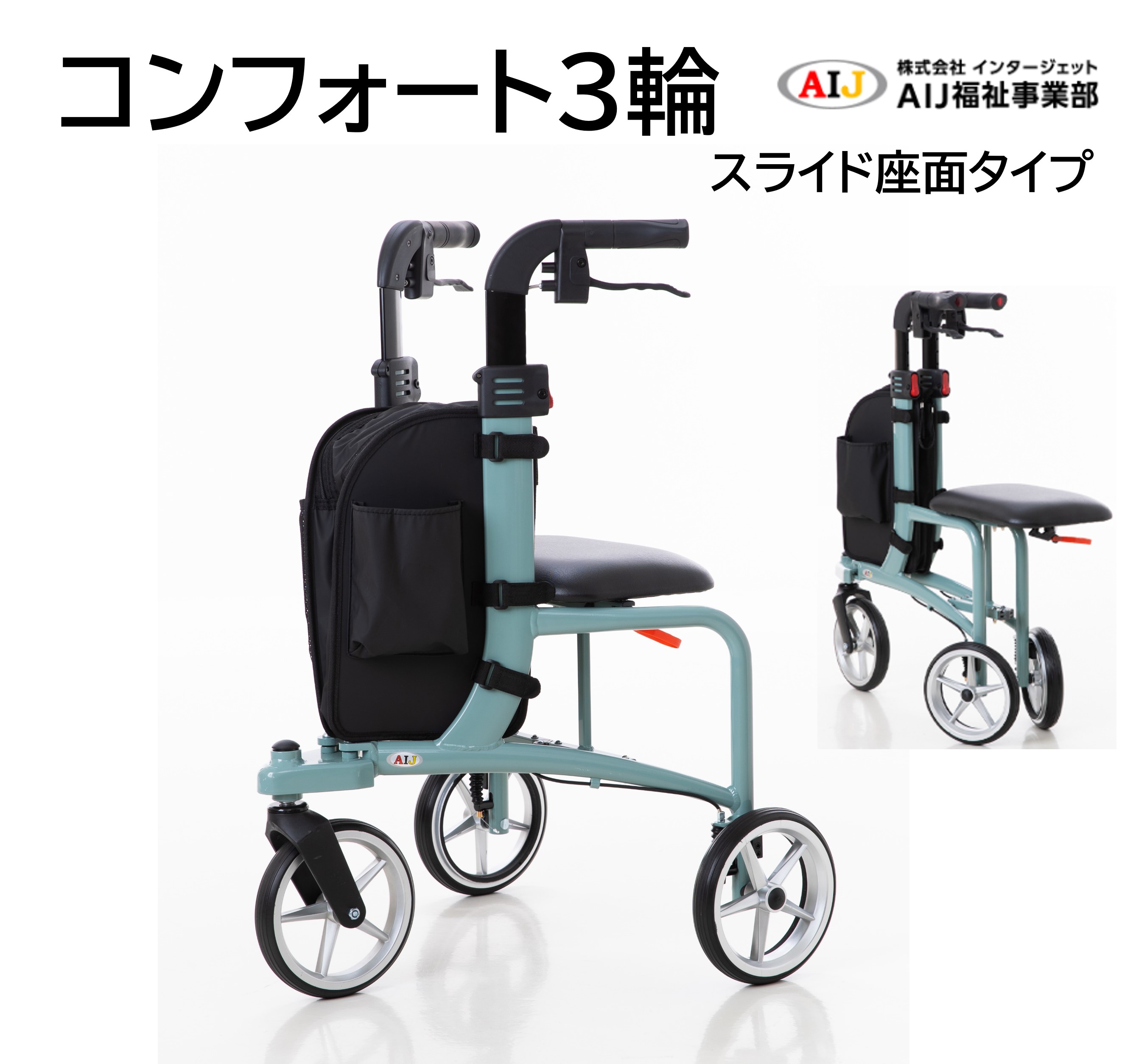 歩行車 歩行器 屋外 屋内 コンフォート 3輪 スライド座面タイプ インタージェット 3輪歩行車 送料無料