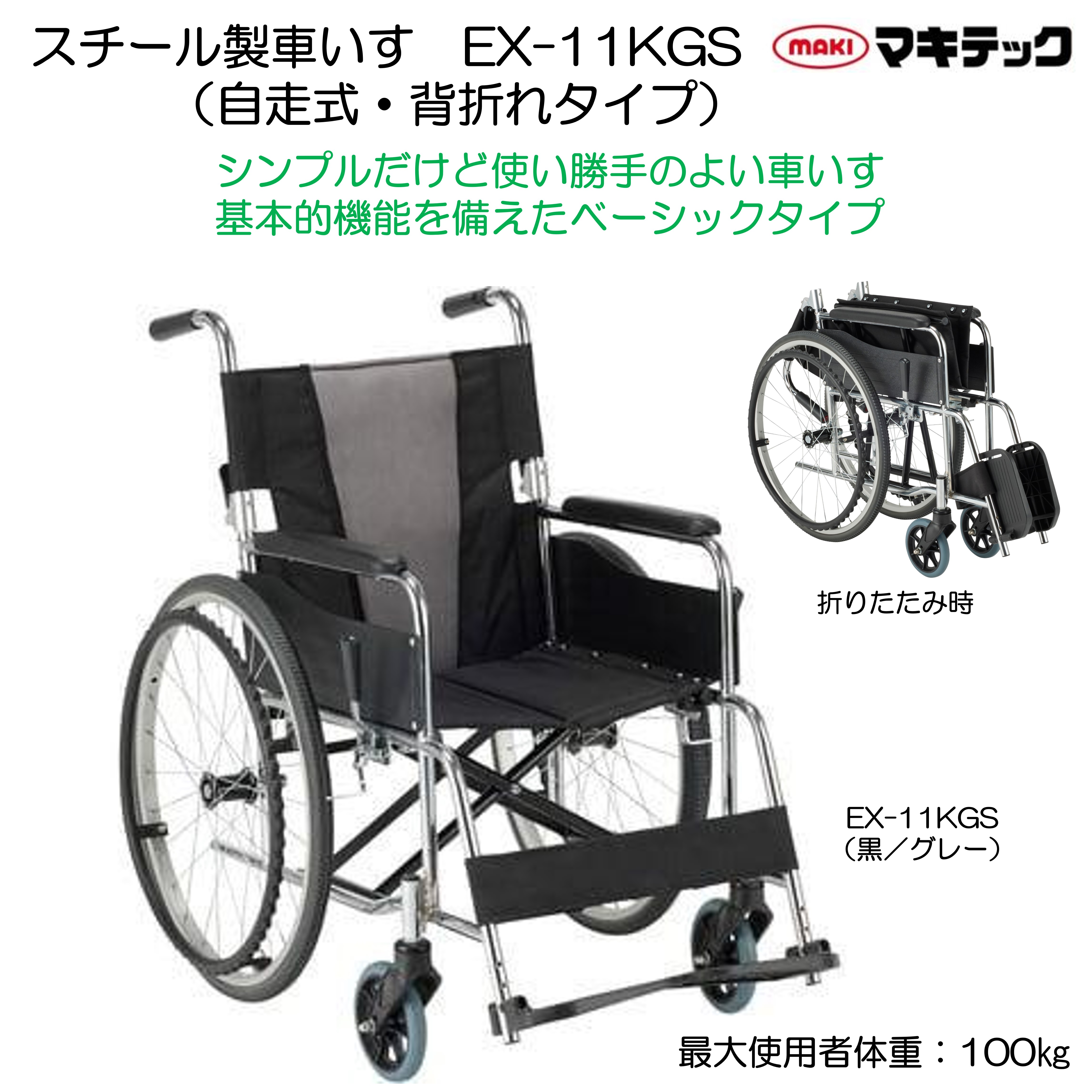 車椅子 軽量 車いす 個人宅配送無料 エコノミーシリーズ EX-11KGS 黒/グレー 自走式 マキテック