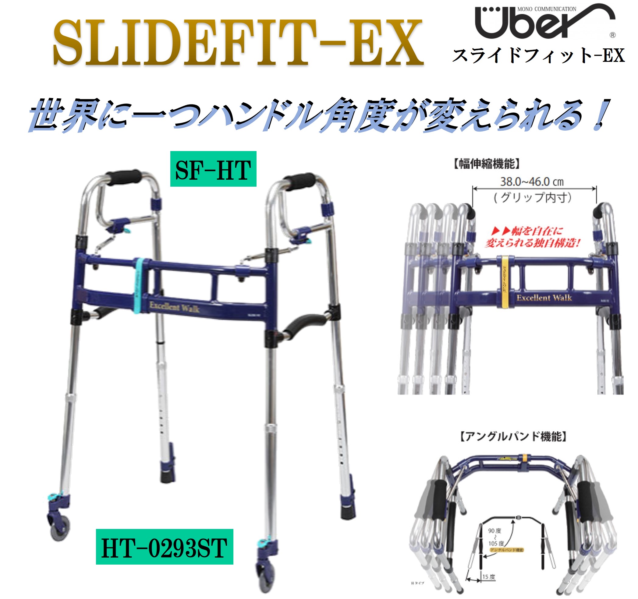 歩行器 スライドフィットEX SF-HT HT-0293ST 超ハイタイプ 3インチキャスター 3インチキャスター プッシュダウンスタンドパイプ ユーバ産業