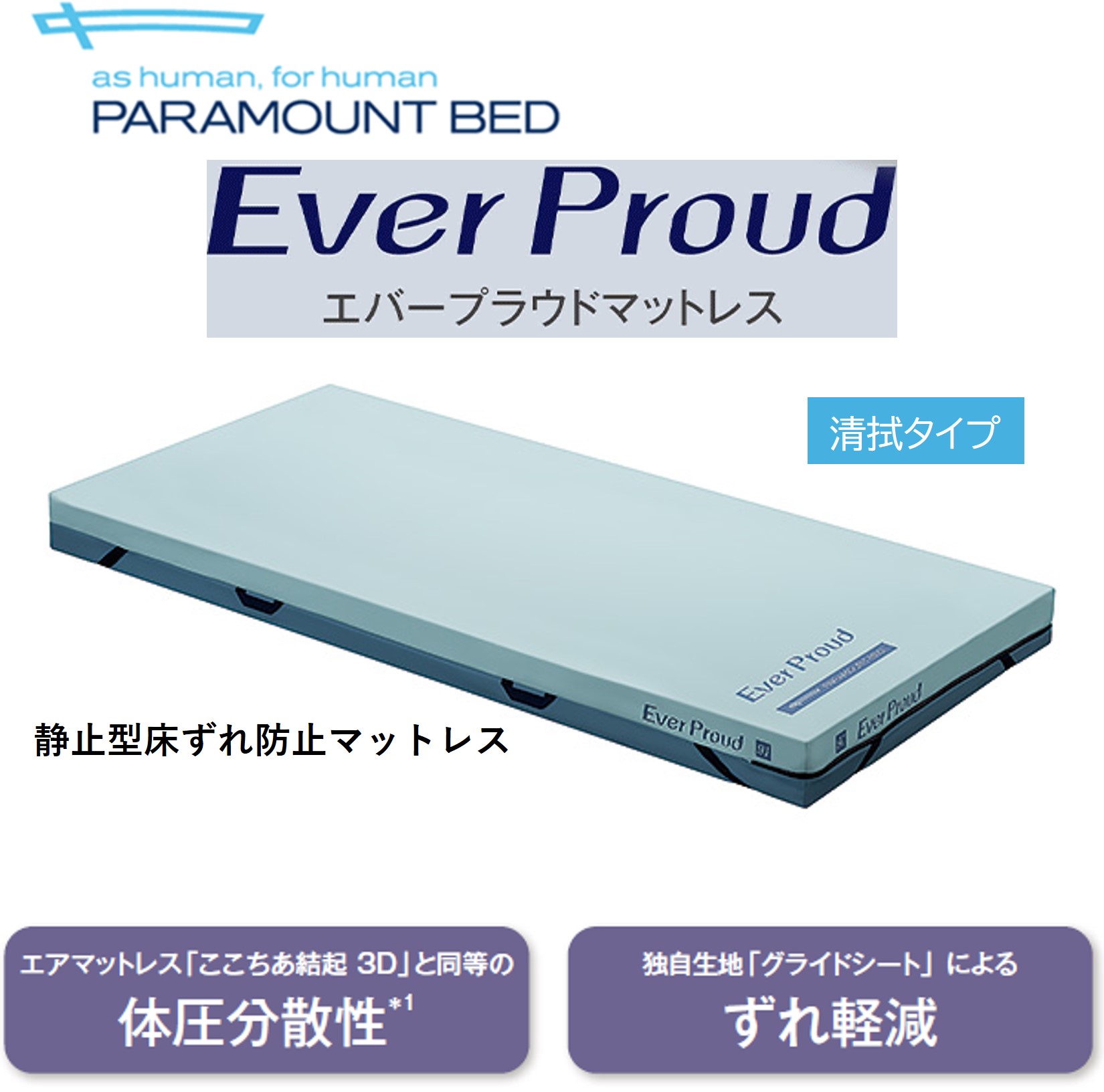従来の標準マットレスよりも厚みをもたせることで、体圧分散性能と質感が向上し、さまざまな利用者様とケアのニーズに対応することができます。