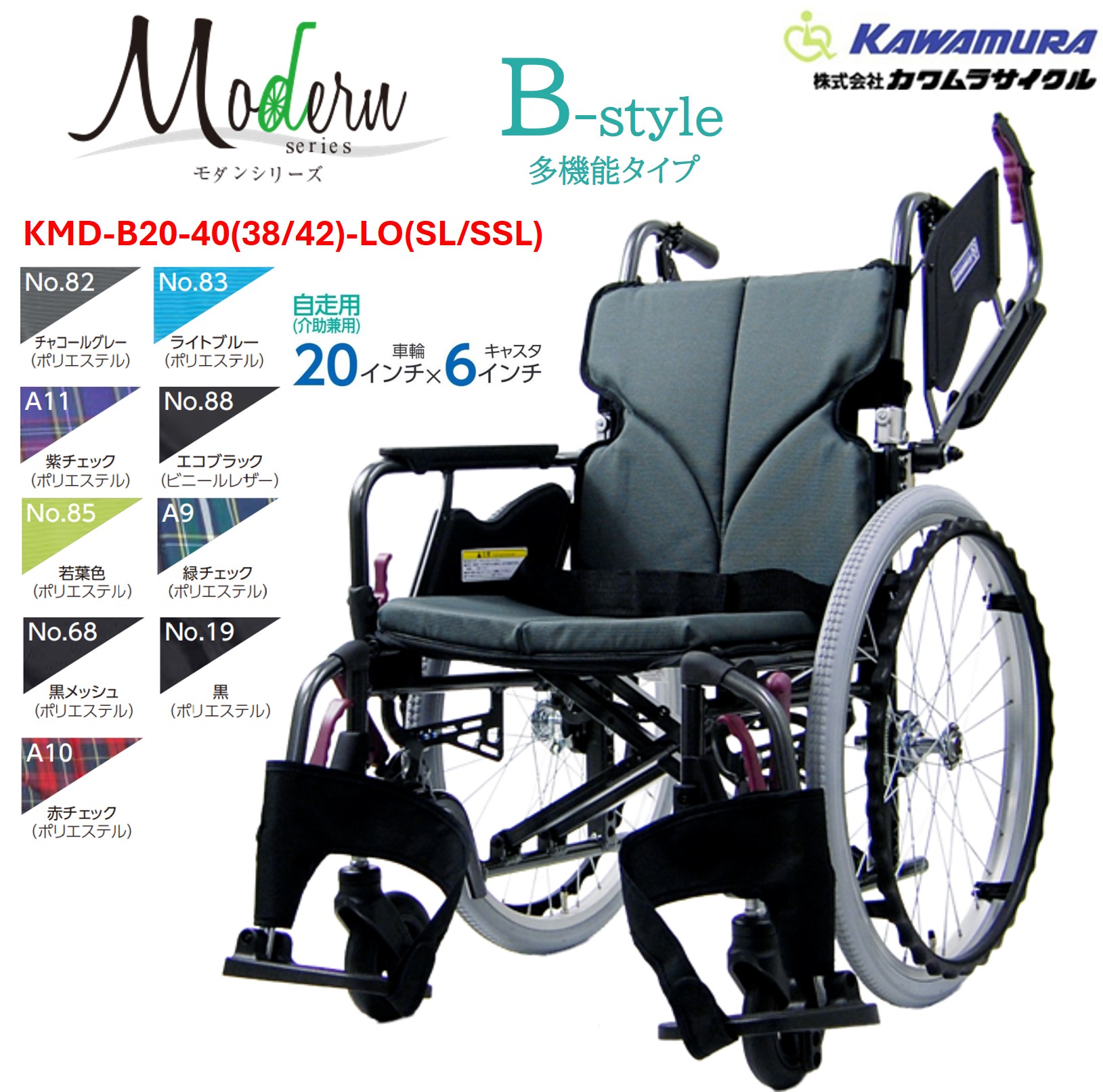 車いす モダンシリーズ Bスタイル 多機能タイプ 自走式 20インチ KMD-B20-40(42)-LO(SL/SSL) 低床タイプ 介護 車椅子 modern 個人宅配送無料 カワムラサイクル