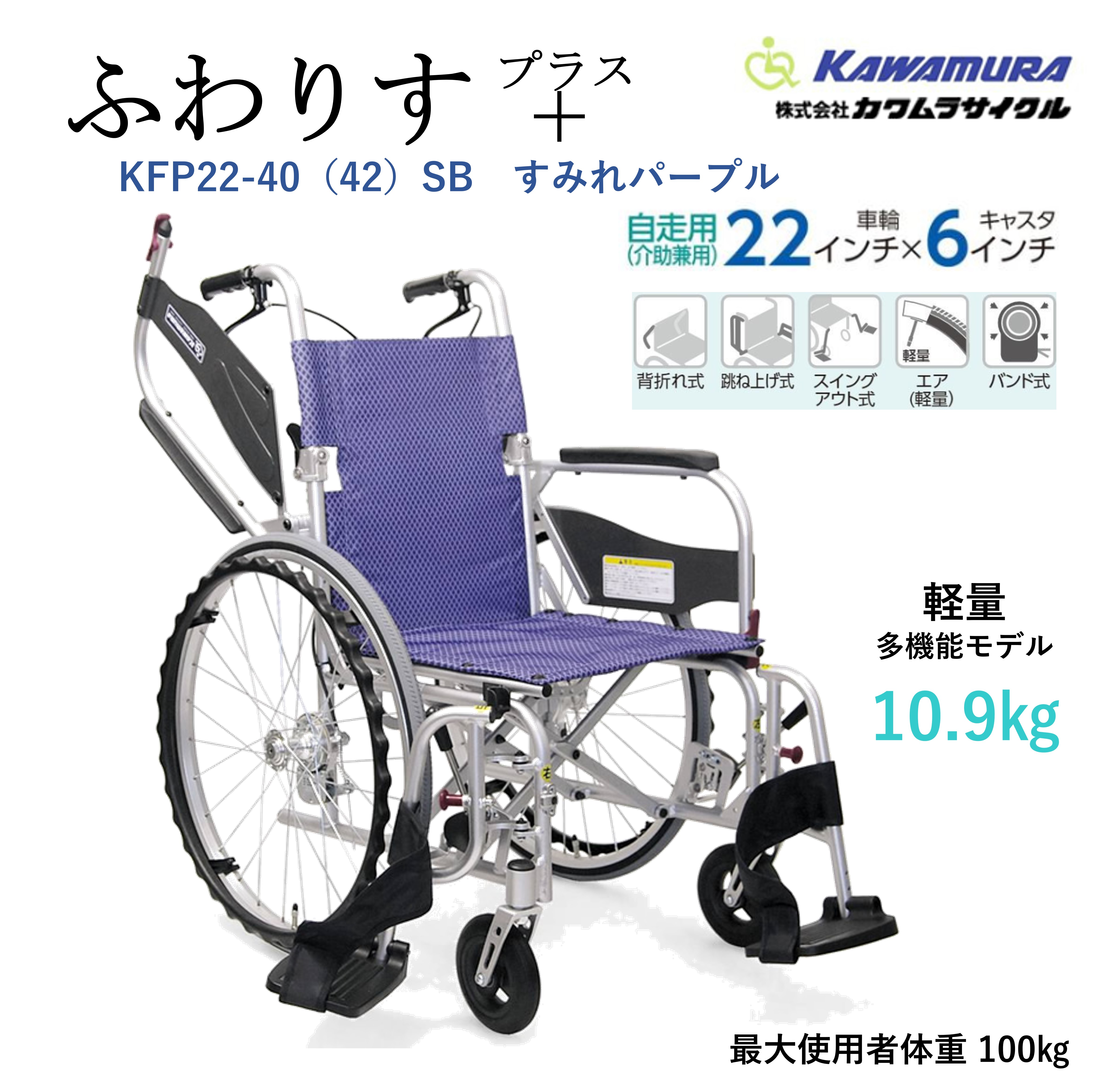 車椅子 軽量 車いす 自走式 ふわりす プラス KFP22-40(42)SB シートNo.97 すみれパープル 配送料無料 カワムラサイクル