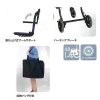 アームサポート跳ね上げができ、収納式フォットサポートと収納バッグが付いているので旅行先でも便利です。