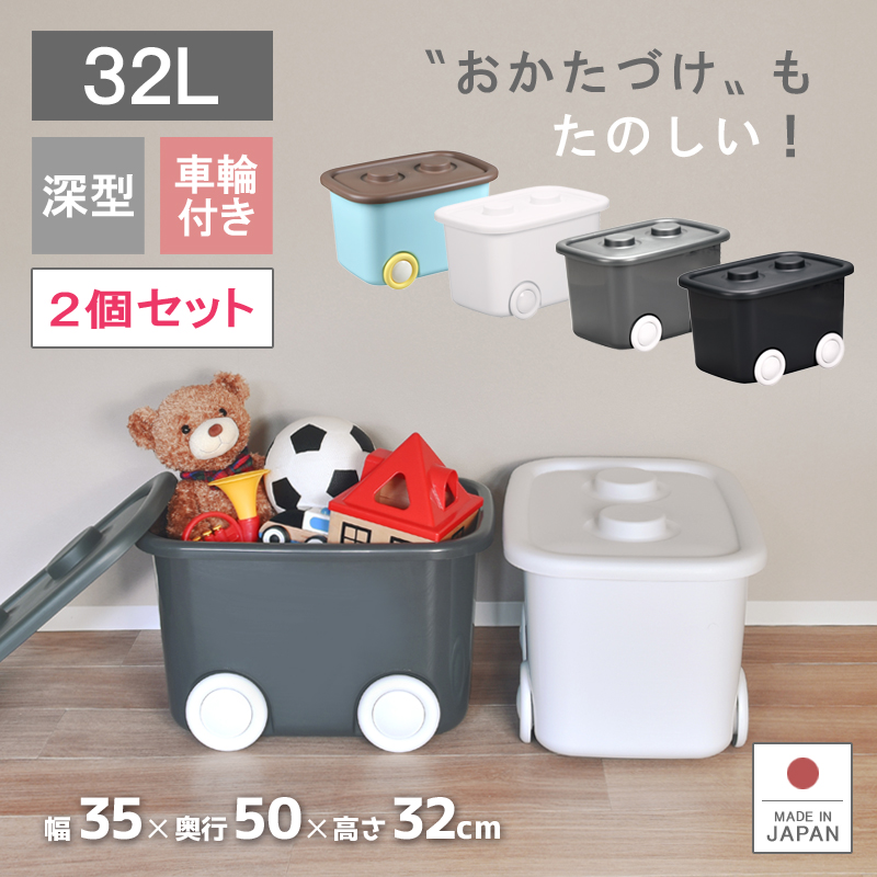 2個セット 収納ボックス フタ付き キャスター付き おもちゃ箱 おかたづけ かわいい シンプル 車輪 おしゃれ おもちゃボックス深型