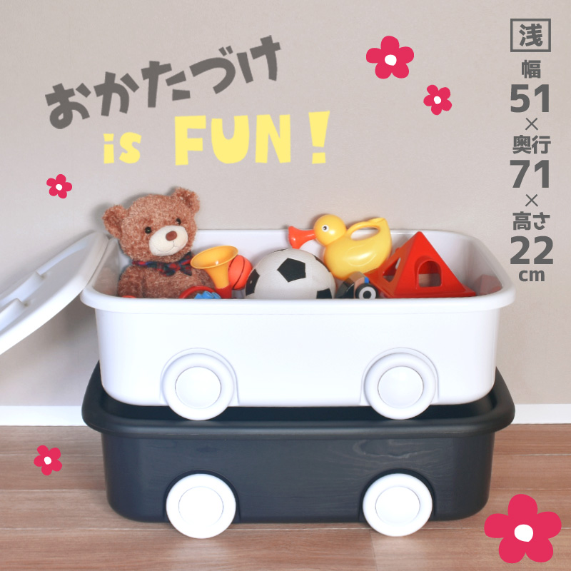 おもちゃ収納 おもちゃ箱 おかたづけ かわいい シンプル 車輪 おしゃれ 収納ボックス フタ付き キャスター付き ベッド下収納 おもちゃボックス浅型