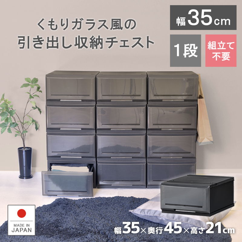 衣装ケース 収納ケース プラスチック製 引き出し収納 1段 クリアチェストC350-1 押入れ収納 衣替え 収納ボックス シンプル 幅35cm おしゃれ