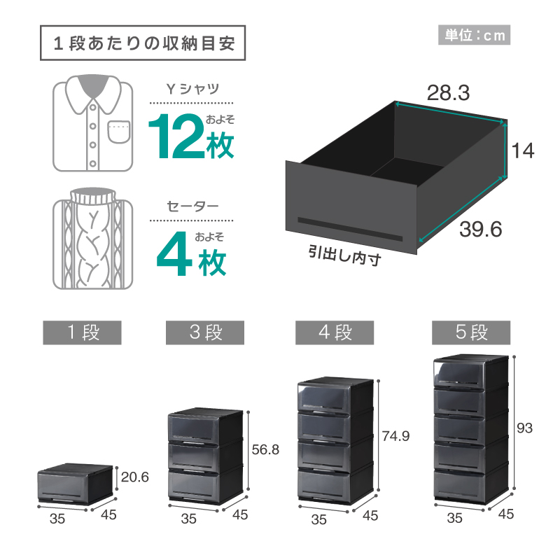 【収納目安】1段あたり Yシャツ約8枚