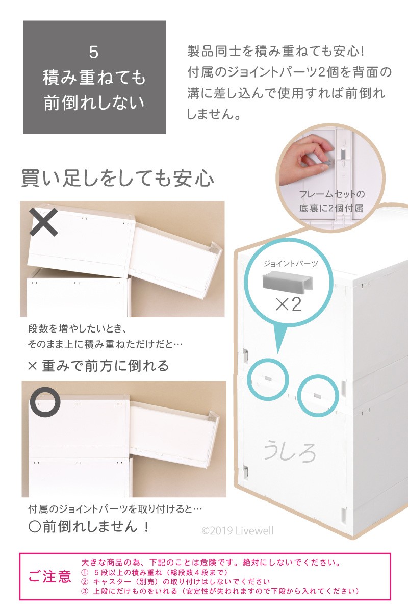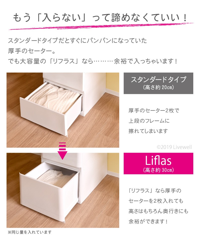 【収納目安】(1段あたり)Tシャツ:約72枚、Yシャツ:約36枚