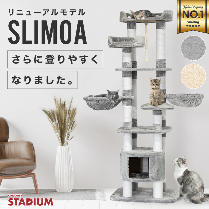 検索用:キャットハウス キャットウォーク キャットツリー キャットタワースタジアム SLIMOA 猫タワー 爪研ぎ 爪とぎ つめとぎ ハンモック ベッド クッション 据え置き 置き型 登りやすい 高級 頑丈 丈夫 高耐久 neolead Livhouse