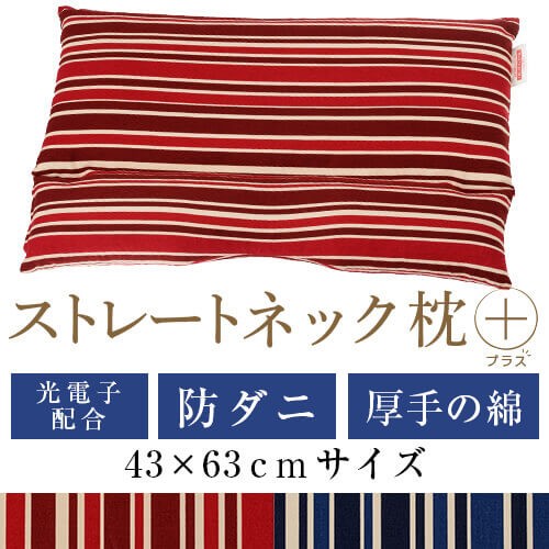 ストレートネック 枕 プラス 送料無料 43×63 cm サイズ 高さ調節 洗える 防ダニ 綿 光電子 パイプ 通気性 まくら 首 首こり 肩 肩こり 日本製