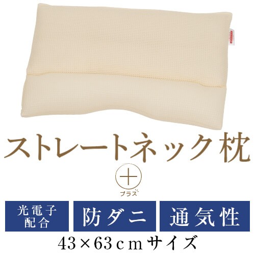 ストレートネック 枕 プラス 送料無料 43×63 cm サイズ 高さ調節 洗える 防ダニ アレルギー 抗菌 防臭 光電子 パイプ 通気性 まくら 首 首こり 肩 肩こり 日本
