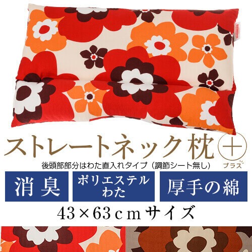 ストレートネック 枕 プラス 送料無料 43×63 cm サイズ 高さ調節 洗える 綿 わた 炭 パイプ 綿オックス フフラ 通気性 まくら 首 首こり 肩 肩こり 日本製