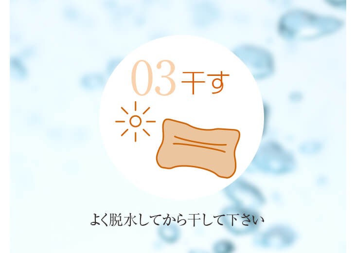 洗濯後は日陰に平干しし、完全に乾いたことをご確認の上、お使い下さい。
