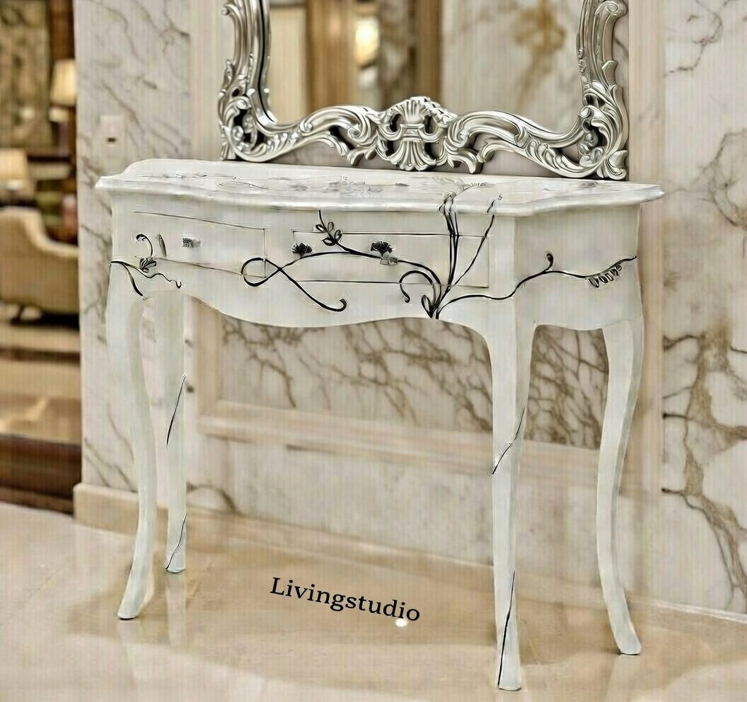 優雅な曲線を描く脚部や天板のフォルムは、空間に柔らかさと品格をもたらし、クラシックインテリアはもちろん、モダンな空間のアクセントとしても映える存在感を放ちます。