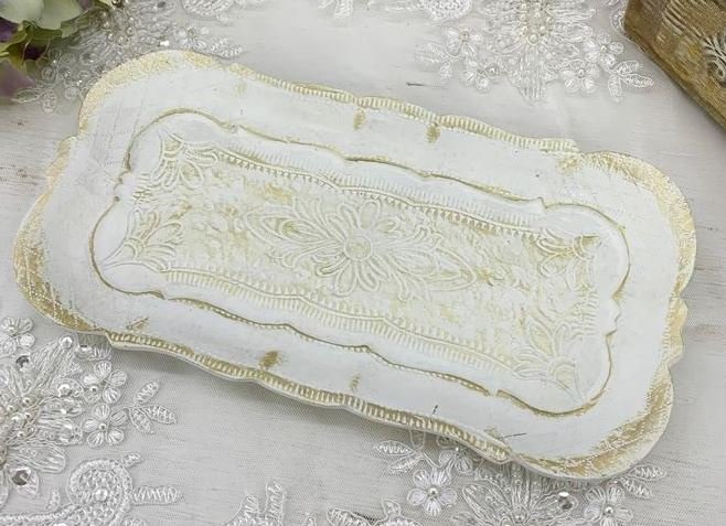 輸入雑貨 トレー 小物入れ ホワイト ロココ ペン皿 アンティーク風 シャビーシック ヨーロピアン 彫刻風 77154TY 直輸入 リビングスタジオ