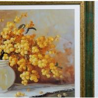 イタリア製 輸入雑貨 額絵 アートフレーム ミモザ アンティーク風 グリーン 母の日 ギフト 風水 縁起 FAL-2756 送料無料 リビングスタジオ
