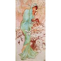 中身の絵は、アール・ヌーヴォーの巨匠のミュシャの代表作「四季」のうちの「冬」です。
