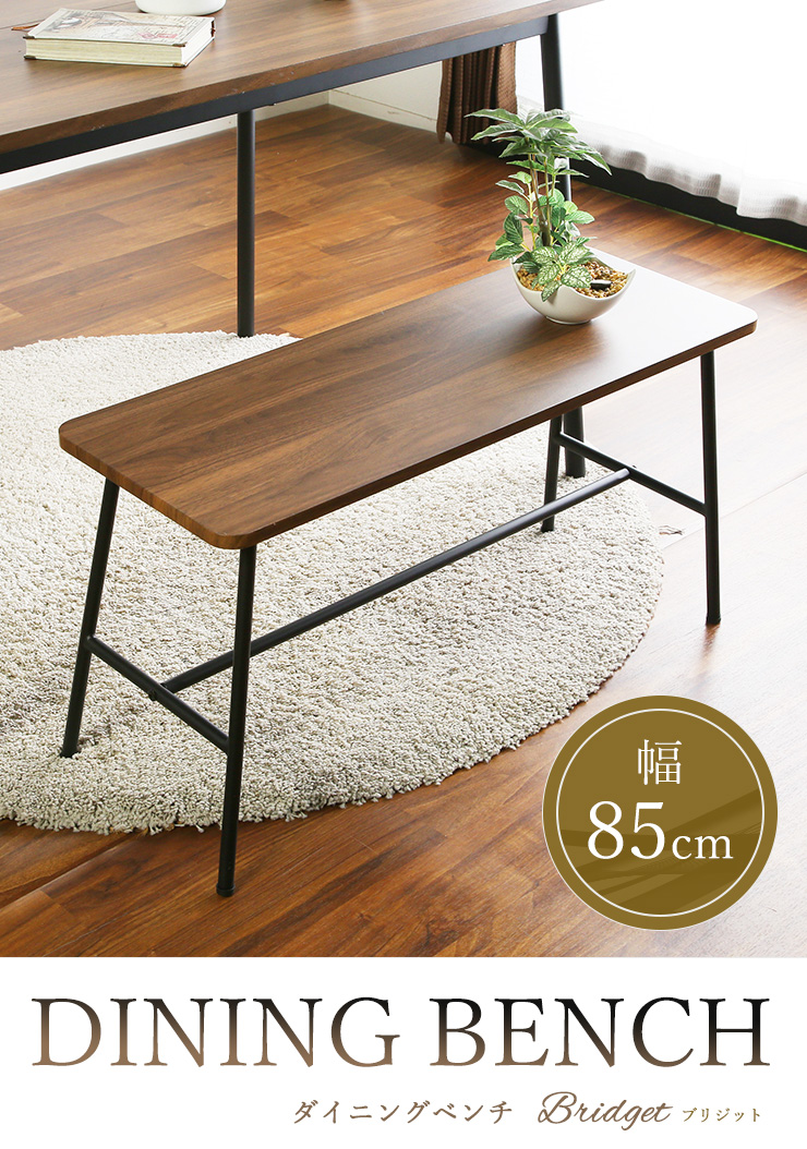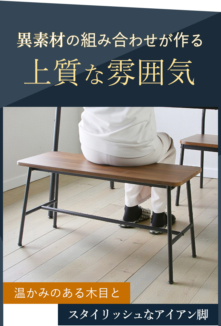 ダイニングベンチ ベンチ 幅85cm 椅子 木製 木目 アイアン アジャスター 異素材 スタイリッシュ お洒落 ダイニング 背もたれ無し モダン コンパクト 作業台 玄関