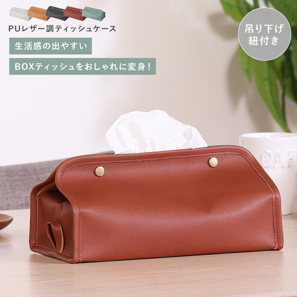 ティッシュケース ティッシュボックス レザー調 2WAY 壁掛け ボタン留め 吊り下げ フック付き おしゃれ かわいい インテリア PU素材