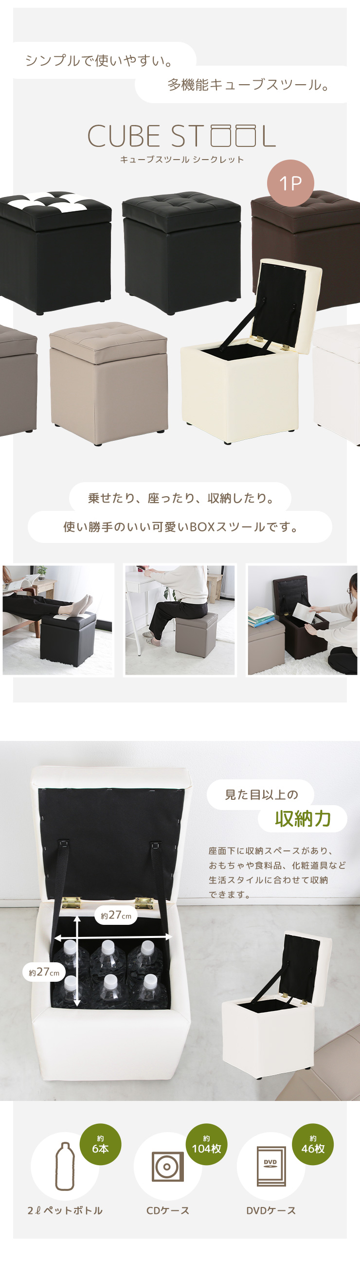スツール 椅子 収納 座れる クッション 正方形 腰掛け 収納ボックス 収納スツール オットマン コンパクト 省スペース いす イス 完成品