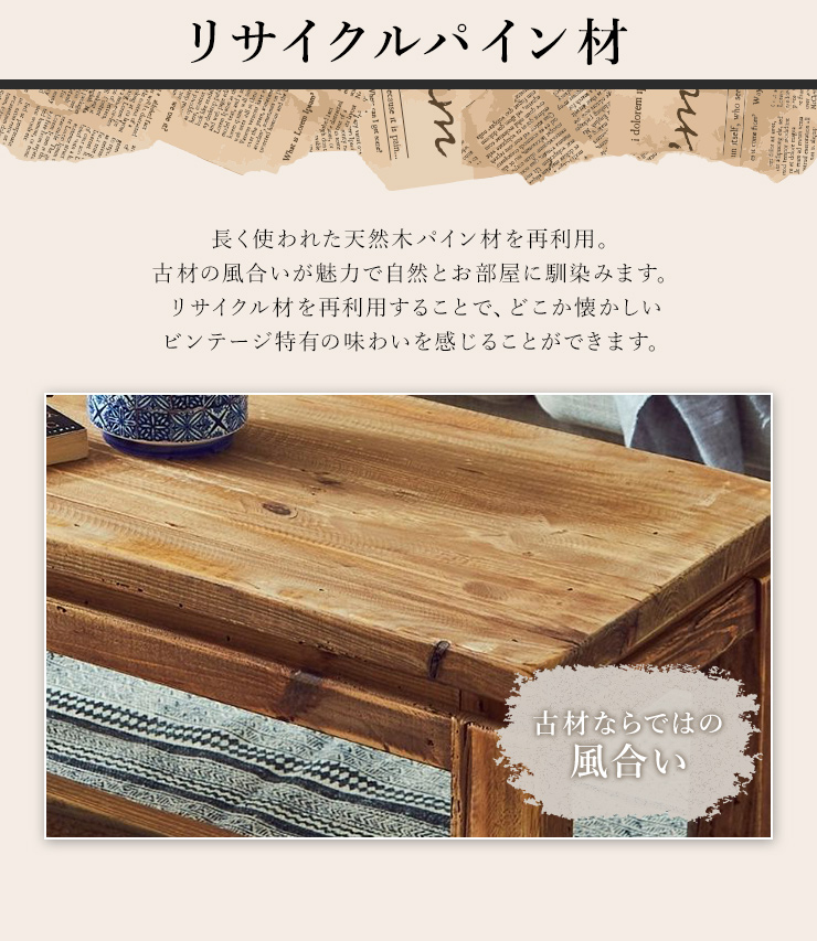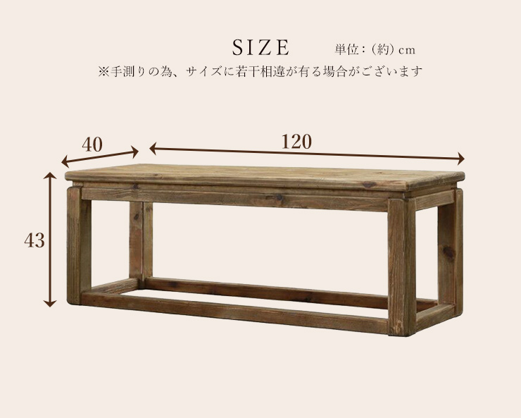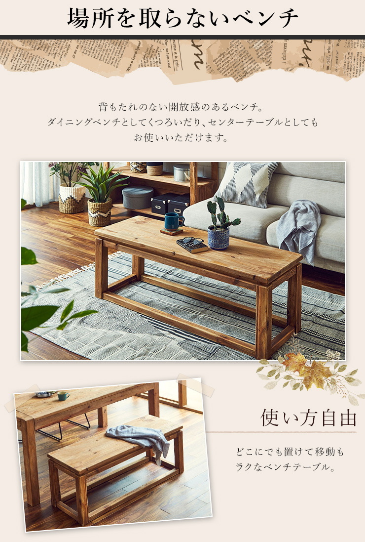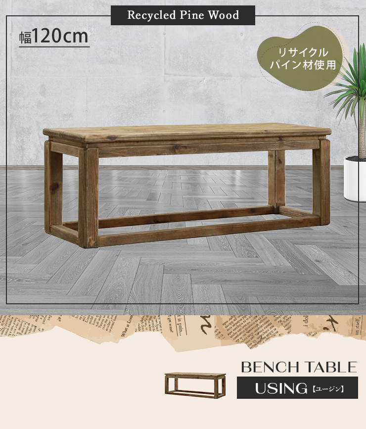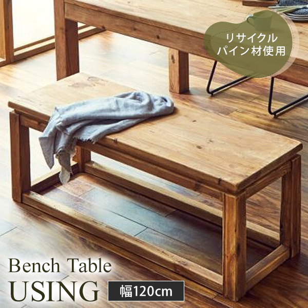 ダイニングベンチ ベンチテーブル ローテーブル 幅120cm ヴィンテージ調 古材 おしゃれ リサイクルパイン材 木製 ベンチ チェア 腰掛け