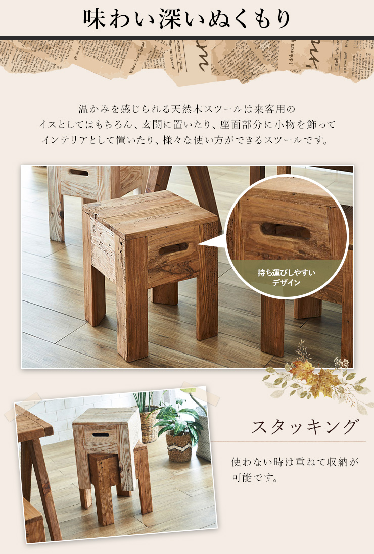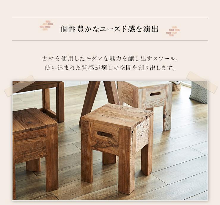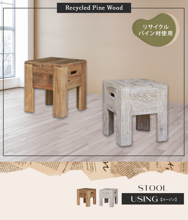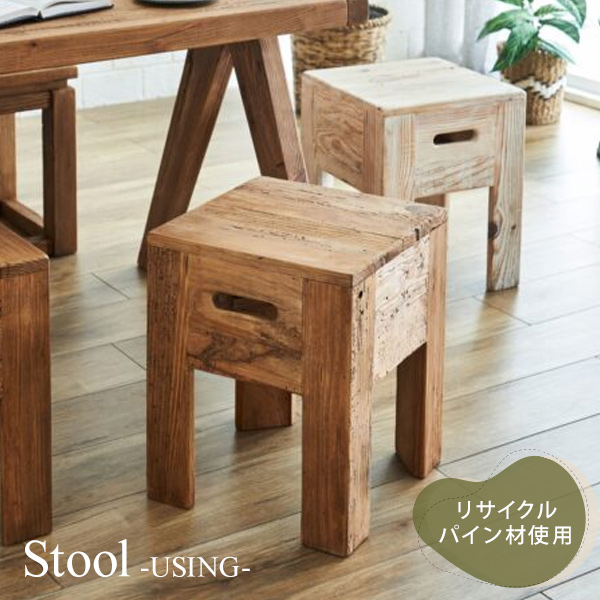 スツール イス 1人掛け 背もたれなし リサイクルウッド リサイクルパイン パイン材 ヴィンテージ ビンテージ ビンテージ調 リサイクル材 木製 古材 エコ 再利用