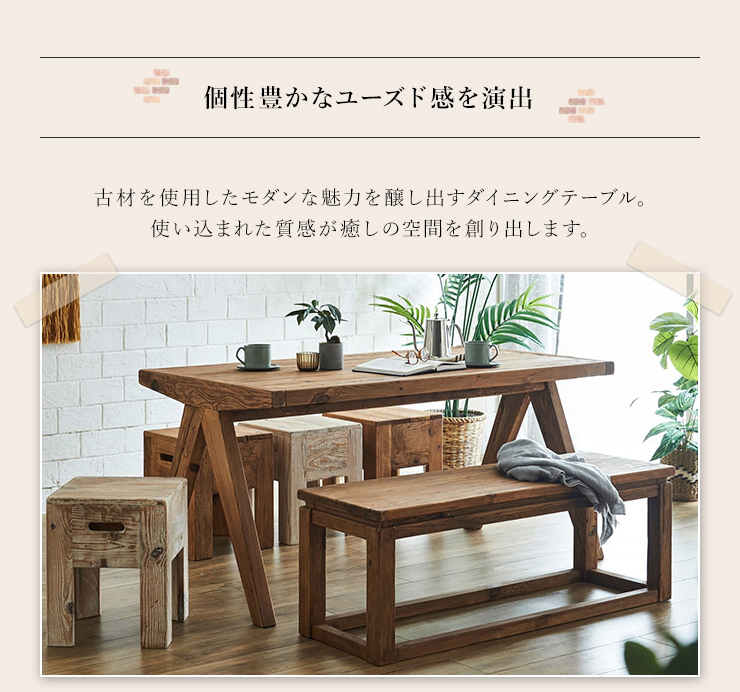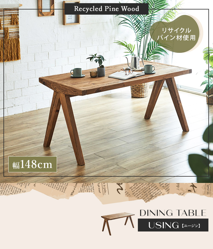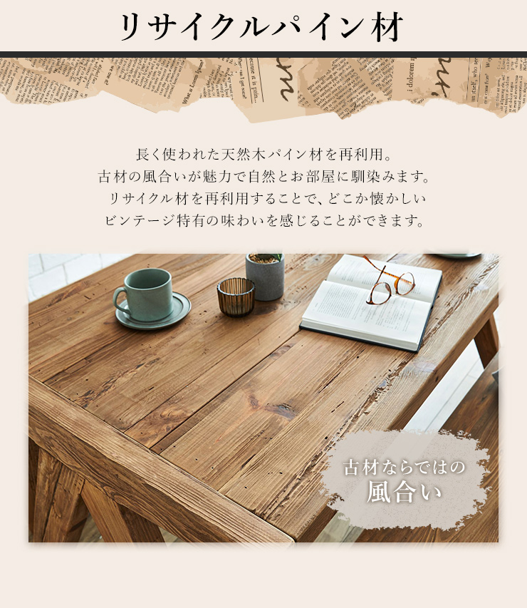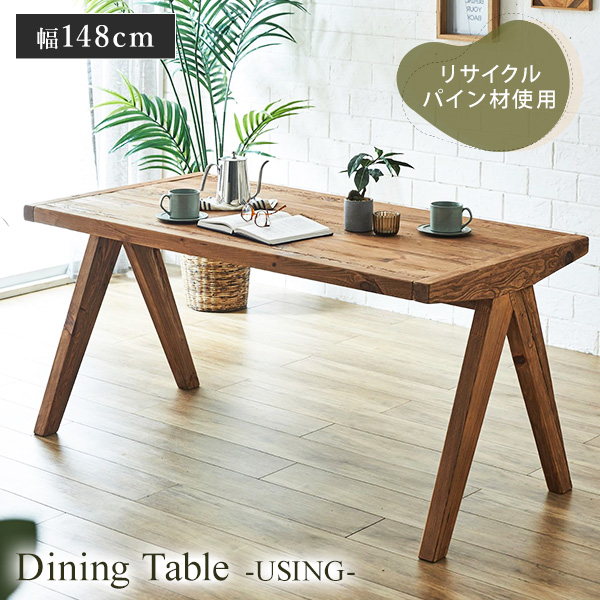 ダイニングテーブル テーブル 148×80cm 148幅 リサイクルウッド リサイクルパイン パイン材 4人用 ヴィンテージ ビンテージ ビンテージ調 木製 古材 エコ