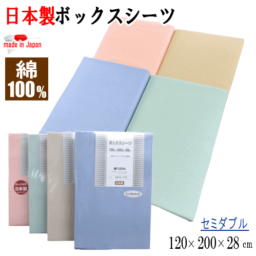 ボックスシーツ セミダブル 120x200x28cm ベッドシーツ BOXシーツ 綿100% コットン 日本製