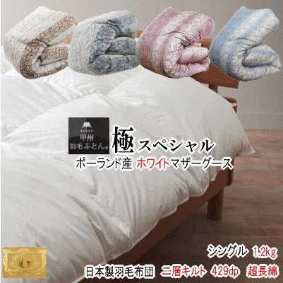 ポーランド産ホワイトマザーグースダウン93% 2層キルト 二層 429dp ロイヤルゴールドラベル 日本製 シングル 羽毛布団 甲州羽毛布団 甲州羽毛ふとん