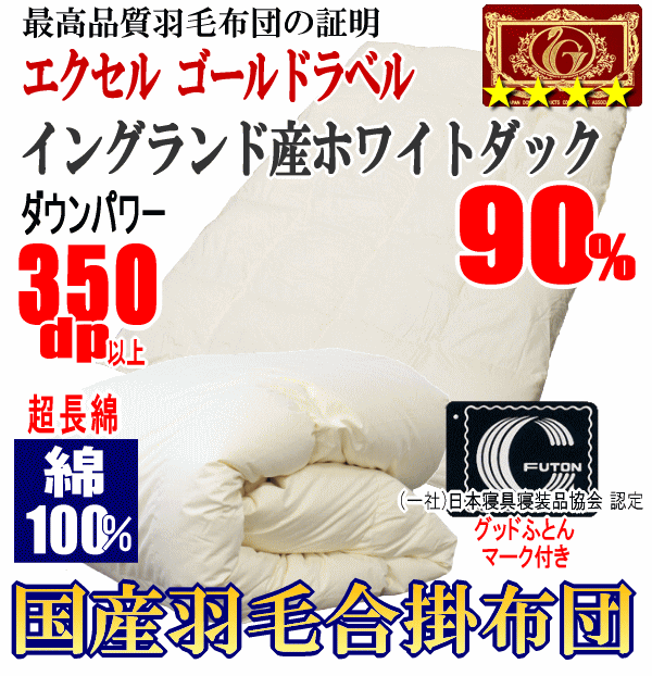 羽毛布団 セミダブル 合掛布団 イングランド産ホワイトダック 90% ダウン エクセルゴールドラベル 超長綿 綿100% 日本製 甲州羽毛布団 甲州羽毛ふとん