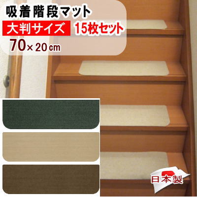 階段マット 吸着マット 階段 滑り止め 15枚セット 吸着タイルマット 吸着 洗えるマット 70×20cm 滑らない 洗える 日本製