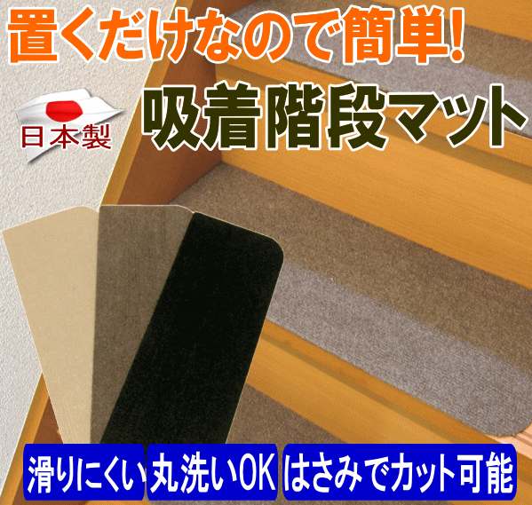 裏ピタ加工の吸着階段マット!手洗いOK♪