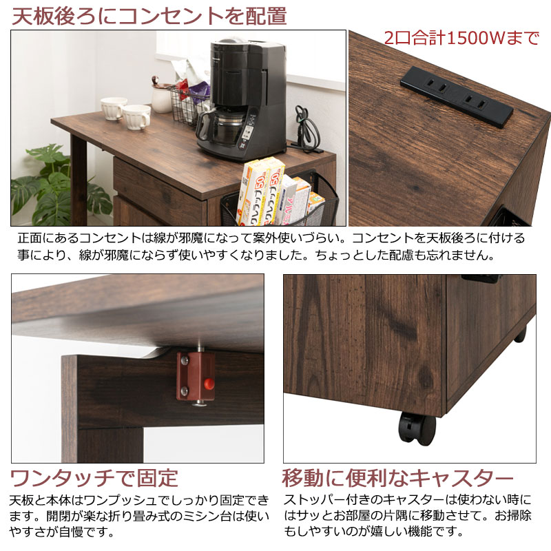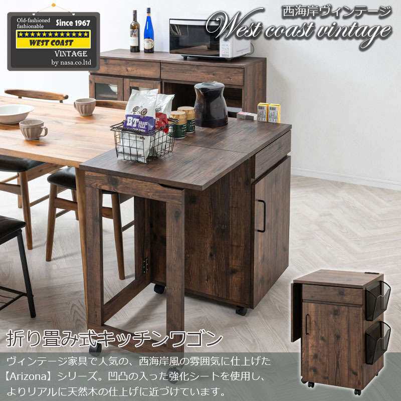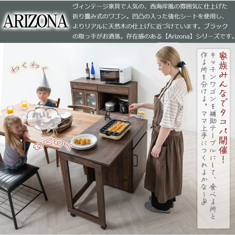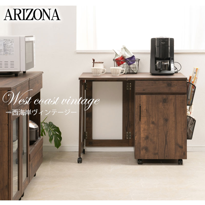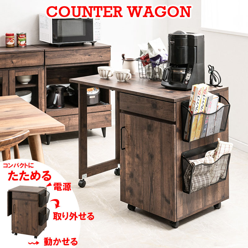 キッチンカウンター キッチンワゴン ブラウン 幅97(折り畳み時59.5) バタフライ 伸縮 デスク 机 折りたたみ 折り畳み キャスター付き キッチンラック ワゴン