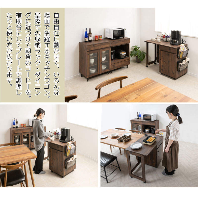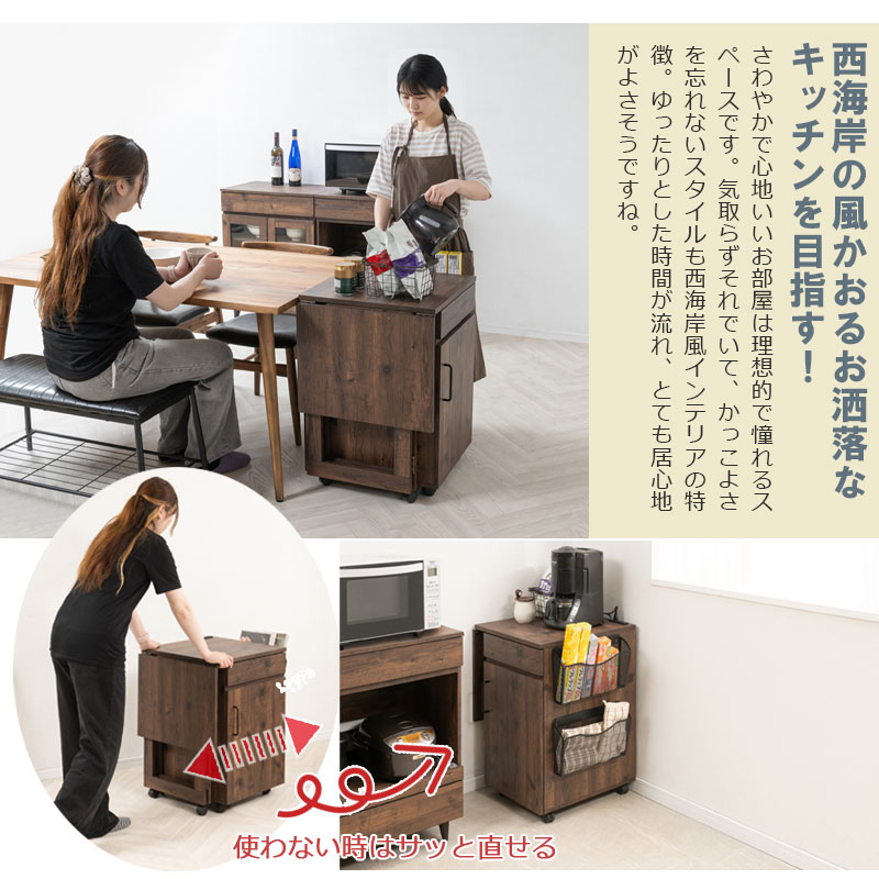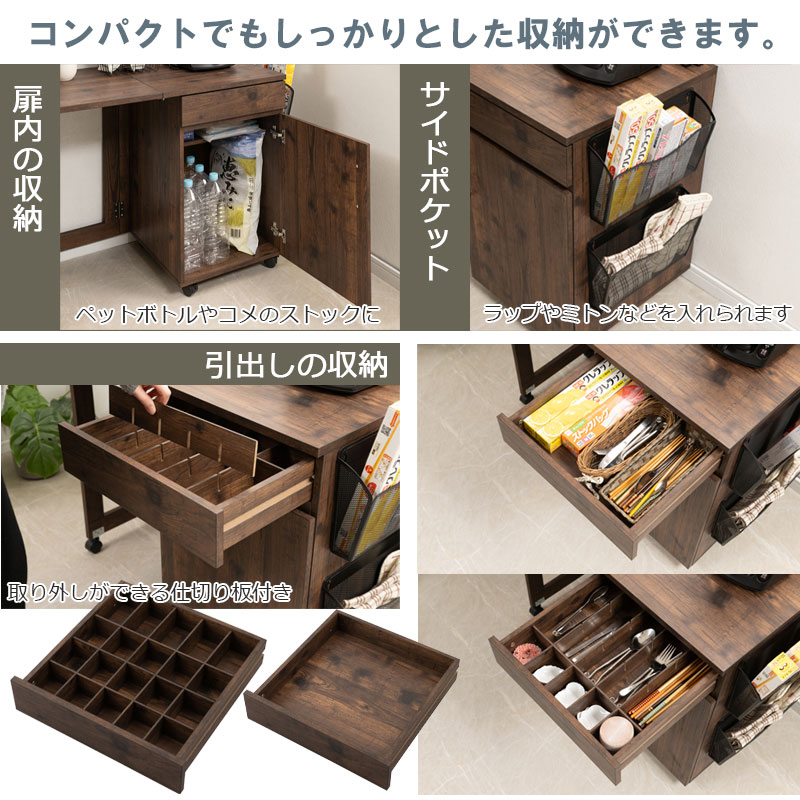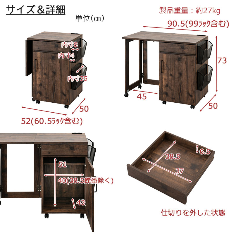 ■商品サイズ/本体:(約)幅拡張時:99(メッシュラック8.5含む)/幅折り畳み時:60.5(メッシュラック8.5含む)×奥行50×高さ73(キャスター含む)cm