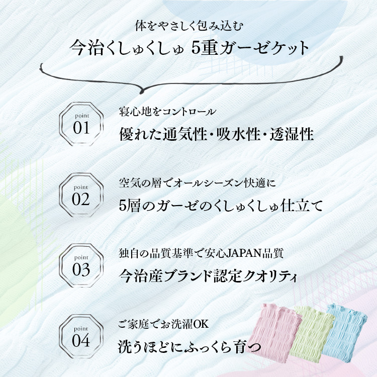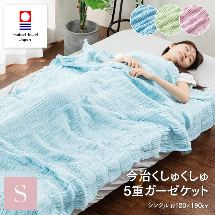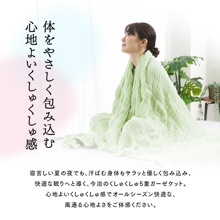 ガーゼケット 5重ガーゼ シングル くしゅくしゅ ケット 今治ブランド 今治タオル 今治 日本製 綿100% 快適 オールシーズン 通気性 吸湿性 洗濯可能 MK