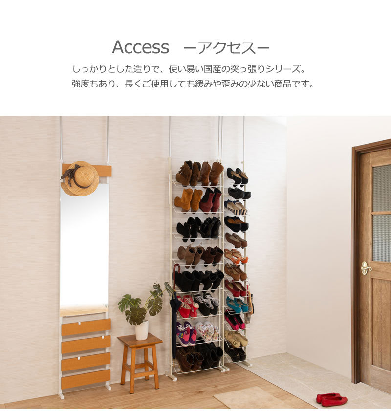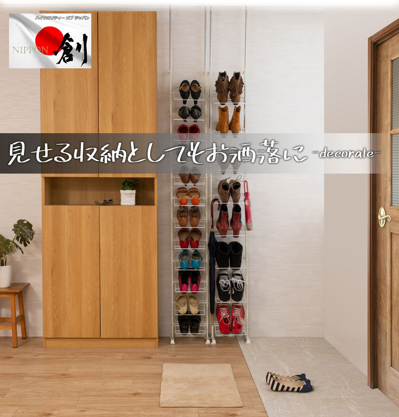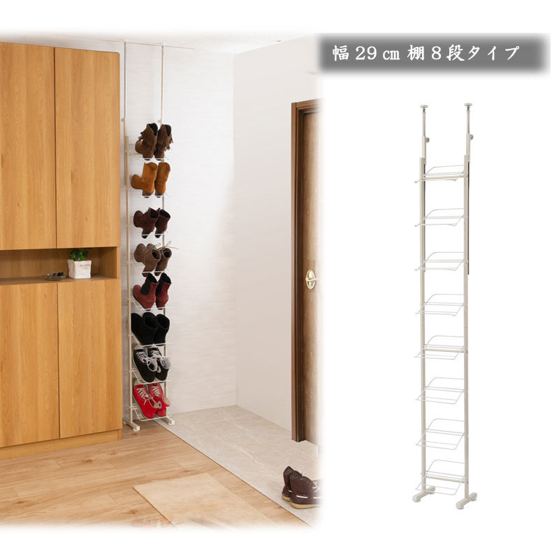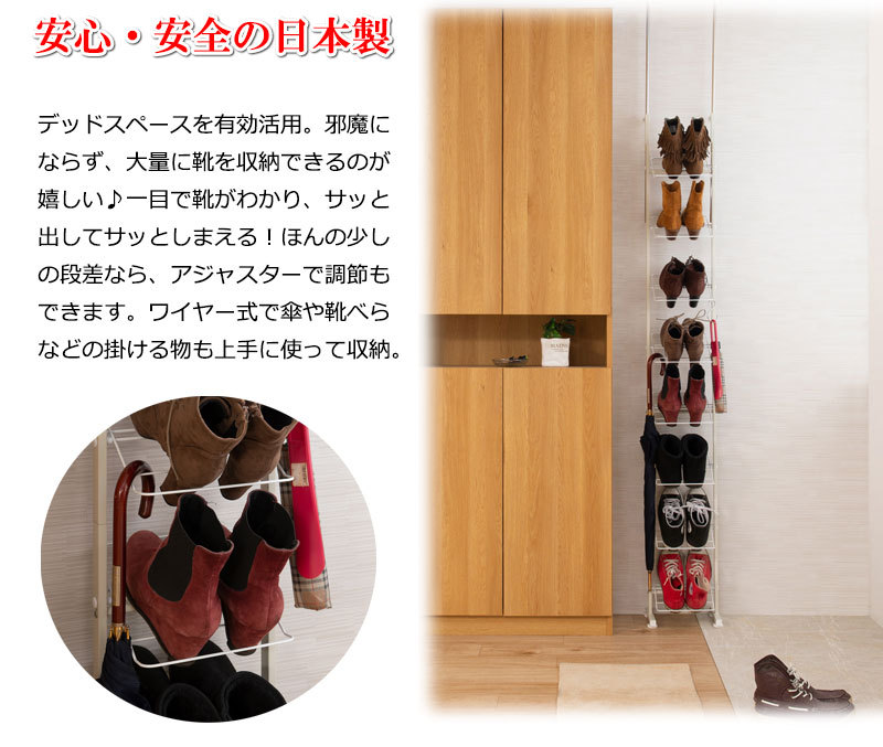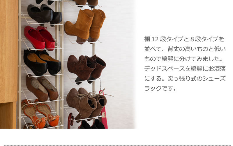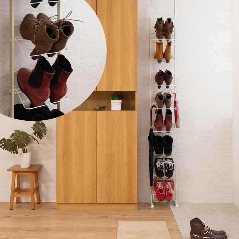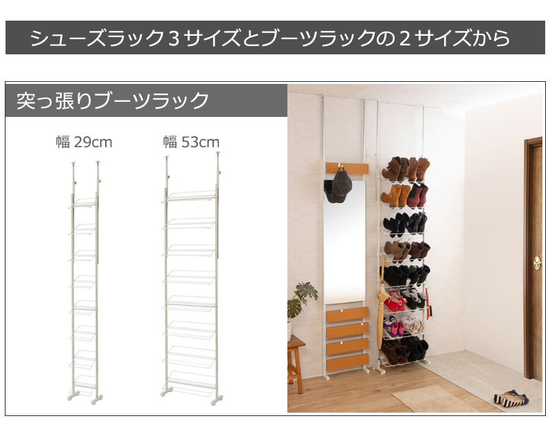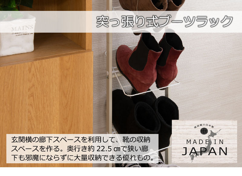 シューズラック 突っ張り ブーツ用 壁面 薄型 幅29cm ホワイト 靴収納 玄関 下駄箱 日本製 MK