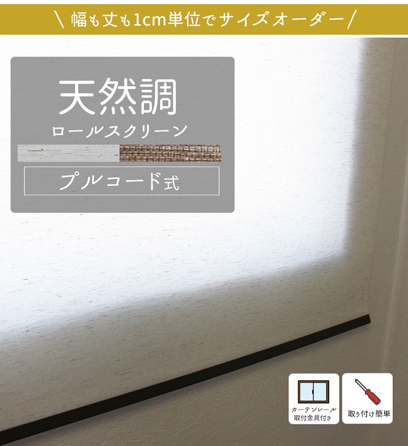 幅46〜60×高さ10〜180cm 1cm単位でオーダー 天然調ロールスクリーン(透過性生地)【resort】 光を透すタイプ リゾート ロールカーテン