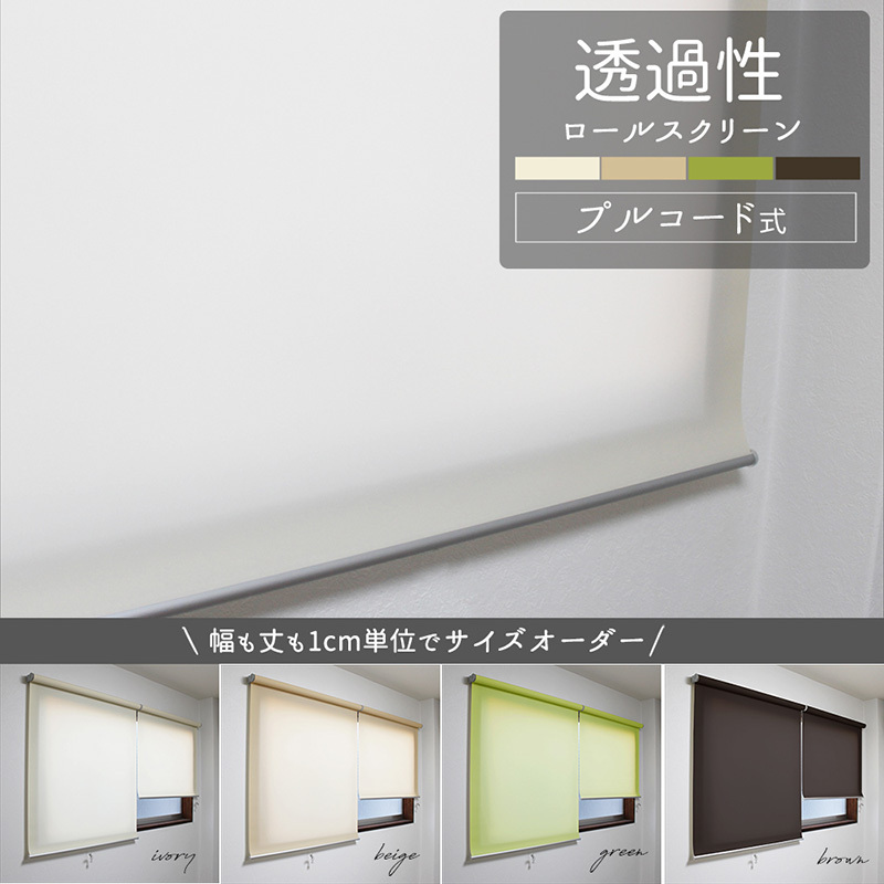 幅61〜90×高さ40〜220cm 1cm単位でオーダー ロールスクリーン 透過性 無地 光を透すタイプ【zen】 ロールカーテン