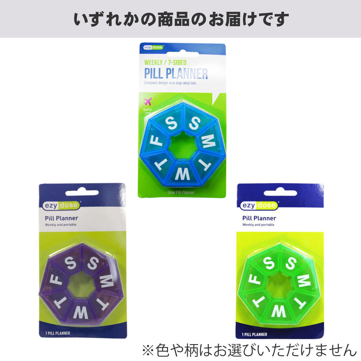 薬を1週間分にわけて使用できるピルケース薬を1週間分にわけて使用できる七角形の形をしたピルケースです。常備薬、サプリメントなどをコンパクトに収納でき、通勤通学、旅行、出張などの持ち歩きに便利です。また、薬の収納だけではなく、アクセサリーや小物等の保管にもオススメです